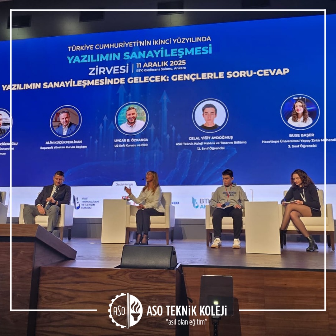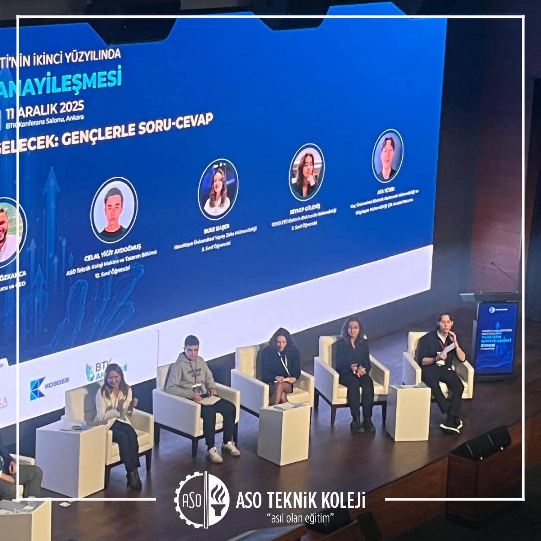 ASO Teknik Koleji olarak, sektörün geleceğine yön veren Sanayileşme Zirvesinde güçlü bir temsil gerçekleştirdik. Zirvede, 12. sınıf öğrencimiz Celal Yiğit Aydoğmuş konuşmacı olarak sahne aldı ve değerli görüşlerini paylaşarak okulumuza büyük bir gurur yaşattı.