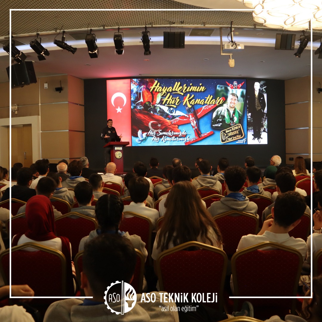 Hürkuş İlk Türk Deneysel Test Pilotu Murat Özpala'yı okulumuzda ağırlamaktan gurur duyduk. Kariyer Günü etkinlikleri kapsamında TUSAŞ'tan okulumuza gelen Hürkuş İlk Türk Deneysel Test Pilotu Murat Özpala muhteşem bir sunum gerçekleştirdi. Mesleğin icrası, hayata bakış açısı, deneyimleri, yaşadıkları ve vizyonu ile ilgili bilgilendirmelerde bulunan Murat Özpala çok güzel mesajlar ile sunumunu tamamladı.