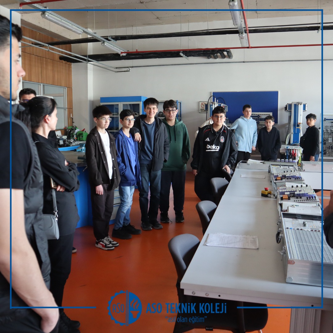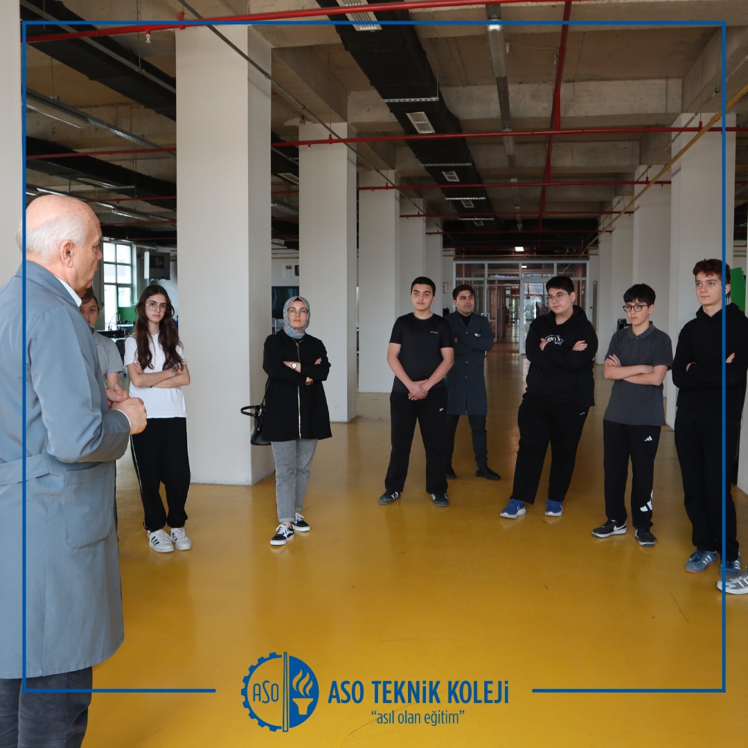 Pursaklar İlçe Milli Eğitim Müdürlüğü tarafından düzenlenen gezi kapsamında, ilçedeki 16 ortaokuldan toplam 120 başarılı öğrenci ve öğretmenleri, Şube Müdürü ve Mesleki Yönlendirme Komisyonu eşliğinde Aso Teknik Kolejini ziyaret etti.